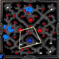 - Červené čtverečky na mapě povrchu i podzemí mapují většinou zdroje vojenských jednotek (vynímečně Doupě zlodějů, či Pevnost na kopci),