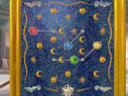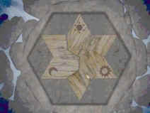 mozaiky na podlaze (nejdříve šesticípou hvězdu, pak dítě, muže, ženu,