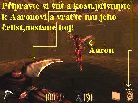 Nejdříve jděte doprava, za zídkou najdete náboje, dynamit a lékárničky, potom se vrate, nyní jděte rovně, na konci projděte mezerou v zídce doprava k domu Bethany. Prohledejte všechny místnosti, v té napravo ode dveří spuste kouzlo Imaginární vidění, spatříte Bethany, jak ukládá pod podlahu pro vás potřebné předměty. Na toto místo pak hoďte dynamitovou patronu, ze vzniklého otvoru v podlaze vyzvedněte Aaron´s Room Key (klíč od pokoje Aarona) a Aaron´s Jaw (Aaronovu čelist), hned nato budete napadeni hordou příšer. Po schodech vyjděte do prvního poschodí, přeskočte si pro lékárničku, vyjděte na balkón a přeskočte doprava na šikmou střechu, nahoře se skrčte a prolezte oknem do místnosti, kde najdete zesilovač, zlikvidujte zbytek skřetů a známou cestou se vracejte zpět na místo, odkud jste sem přišli, po cestě si ovšem na vás brousí zuby dvě obrovské příšery, nakrmte je Ektoplazmou, potom už v klidu vstupte zpět do Manor. Nacházíte se samozřejmě zpět v Gardens, zamiřte hned ke kuchyni, což znamená ven, za schody zabočte vlevo a vejděte do posledních dveří vpravo, v animaci vás napadne Aaron, teď jste v North Wing Upper, proběhněte do dveří kolem něj do dalšího uložení hry. Tam vyjděte po schodech nahoru, projděte dveřmi, dejte se doprava, zahněte na schody vlevo, u známého zrcadla se dejte doprava. Pokračujte během dál až do místnosti, kde vás Aaron před tím nechtěl pustit ke kouzlu Zesílení, pokračujte po krátkých schůdcích dolů a odbočte do prvních dveří vlevo, tedy do pokoje Aarona. Naproti seberte ze stolku lékárničku a Beathany´s Room Key (klíč od pokoje Beathany). Spatříte cloumání dveřmi, zlý dětský chechot, tak honem se schovejte za postel a skrčte se, nějaké podivné temné síly se vás budou totiž chtít vysát z místnosti a připravit vás tak o život. Pokud to přežijete, což ovšem musíte, atakování přestane, proto vyjděte dveřmi zpět do chodby, odbočte za dveřmi vlevo a pospíchejte na samý konec chodby, přejdete tak do Central Upper. Odbočte doleva, ocitnete se tak v pokoji Beathany, tam vlevo seberte ze stolku deník, tak si otevřete vpravo za vámi vchod, ale stojí v něm nebezpečná zrůda. Zapněte si kouzlo Imaginární vidění, tak vám neuškodí, oběhněte ji a slezte dolů po žebříku, ocitnete se v Crypt. Popojděte dopředu, spatříte přikovaného a domněle tedy už mrtvého Aarona, no nedejte se mást. Nejdříve si připravte co nejvíce posílený štít a jako zbraň si navolte kosu, pak si raději hru uložte (F6). Poté se připližte k Aaronovi, vrátíte mu tak jeho čelist, on ožije, utrhne se z okovů a teď tedy nastane mela. Nechávejte stále štít zapnutý, pokud vám ho Aaron zničí, zapněte jej ihned znovu. Sekejte přitom do něj kosou, seč vám síly stačí, pochvíli mu utnete ruku a on si vskočí doprostřed kruhu, bude se snažit vás zasáhnout řetězem, ale je zbytečné po něm střílet, ale k sobě vás nepustí. Stoupněte si raději ke dveřím, jak po vás sekne řetězem a ten se mu zasekne na chvíli do dřevěné výplně, využijte toho, doběhněte k němu a utněte mu tu jeho zrzavou a zpupnou palici jediným sekem vaší kosy, teď máte od něj definitivně pokoj a přejdete v pokoji do další části.
