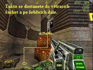 patro vý, plazte se chodbou, rozstřelte mří a prohledejte okolní
