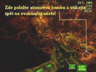 atomovou bombu a pak během tří minut jeskyni opustit a nalézt evakuační zónu,