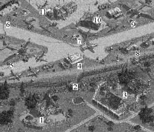 10. Odstřelovačem zlikvidujte stráž na balkoně i na křídle letadla. Nezapomeňte na patrolu před hangárem kterou nalákáte k domům a tam zlikvidujete. Zbylé dvě už nebude problém.
