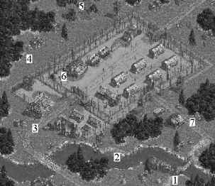 6. Vylezte po skále a odstraňte stráž před stanem a pak ostatní lákejte k bloku nalevo kde je likvidujte. Pozor přitom na psa. Přilákejte k vlajce stráž z mostu a pak zlikvidujte kulomet. Zbývají poslední dvě stráže na druhé straně mostu. Přitom pozor na patrulu u kostela.