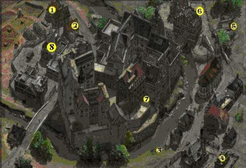 V této misi se nesnažte prozkoumat celý zámek a využívejte odstřelovače k likvidaci vojáků v oknech. Snažte se ze začátku nevyvolat poplach a dejte si opět pozor na civilisty. Vězně začněte osvobozovat až v okamžiku kdy bude cesta ke svobodě volná a pozor nato je jich 58 a musíte jim dát uniformy zabytých vojáků. Hru začněte s Tinym a zlikvidujte vojáka u skleníků. Pak se zaměřte na vojáka u domů  a pak vylákejte vojáka před domy a vejděte dovnitř (1). Zlikvidujte postupně toho v koupelně, pak toho co má noviny a nakonec malíře. Prvního důstojníka vylákejte aby jste ho mohli zlikvidovat a prohledejte vše. Z prostěradla se stane dobré lano a můžete vyčistit podkroví. Pak vylákejte vojáka u řeky a jednoho z dvojce který vidí na skleník. Pak vejděte do domu (2) a celý ho vyčistěte. Tím je cesta do skleníku od zadu volná a celý ho prohledejte. Teď vás čeká nepříjemná část. Vlezte do řeky a u vojáka u schůdků se potopte. Vylezte u civilisty (3) a odlákejte vojáka který se dívá na místo kde chcete vylézt někam za důstojníka který stojí před domem. Pak se přeplazte co nejvýš a až se odstřelovač zase nebude dívat rychle odejděte ze zorného pole a zlikvidujte odlákaného vojáka, důstojníka před domem a vylákejte důstojníka který chodí po cestě a vojáka který chodí u továrny. Jděte do domu u kostela ne této straně silnice  a celý ho vyčistěte a prohlédněte. Vyjděte ven a zlikvidujte vojáka u řeky a u kostela. Tím je Spooky volný a Tiny mu předá potřebné věci a uniformu vyššího důstojníka. Pak zlikvidujte hlídku která chodí kolem kostela. Přesuňte se k továrničce a vylákejte vojáka který chodí dokola. Potom zlikvidujte oba dělníky a věnujte se vyčištění budovy (4). Zabijte vojáka který se dívá ven oknem a vylákejte vojáka který sedí u stolu. Prohledejte dům a najdete tři bonusy. Pak se vydejte směrem ke kostelu a vyčistěte postupně terasu za domem a okolí kostela. Teď se vydejte k autu (5) a zlikvidujte vojáky u něj a ty u kostelíka. Teď vyčistěte celý prostor směrem k Treadovi a svojí pozornost přeneste na Dukeho. Tem musí zlikvidovat všechny odstřelovače a vyčistit vše kam vidí. Teď už můžete shromáždit všechny svoje muže u zámku (6) a pokusit se o vstup dovnitř. Zabijte čtyři vojáky a vojáka za domem. Po vstupu jsou dole dva vojáci a nahoře je jich šest. Vejděte dovnitř, zabavte důstojníka a odstraňte vojáka který se dívá na popravčí četu. Potom hoďte mezi vojáky plynový granát a postupně je zlikvidujte. Teď už si v klidu promluvte s Lupinem. Vstupte dovnitř dveřmi pod schody a zlikvidujte vojáka na chodbě. Dostanete se do místnosti s více poschodími a zabijte všechny vojáky. V místnosti na prvním poschodí vpravo najdete kódovací tabulku (v kabátě) a pár věcí. Musíte přitom zlikvidovat všechny co tam jsou. Dveře u vysílačky vedou do místnosti se žebříkem kde jsou nahoře náboje pro odstřelovače a dejte se do knihovny kde je pár věcí. Vyjděte ven k dělům a zlikvidujte stráž a vraťte se nazpátek a dejte se o poschodí níž. Vojáci by neměly být problém a vyjděte ven dveřmi které vedou ze zámku. Vejděte do druhých dveří a dostanete se ke stenografu. Místnost vyčistěte. Dole jsou tři vojáci a ty musí pryč. Zde to musíte vyčistit vše včetně schodů a odemknout dveře (klíč má jeden z vojáků). Vraťte se nazpátek do místnosti se schody. Přes místnost s děly se dostanete do jídelny. Spooky odstraní vojáka který brání pohybu ostatních a přejděte do další místnosti se schody a dveřmi.V místnosti se čtyřmi vojáky najdete pár věcí a za dveřmi naproti jsou dva vojáci a taky pár věcí. O poschodí níž je pět vojáků a kódovací vzor. Vraťte se do místnosti kde jste našli tabulku a přes nemocniční oddělení se dostanete do druhé části budovy. Zlikvidujte vojáka na chodech a pak vyčistěte vnitřek. Najdete pár věcí a hlavně na věšáku je dekodovaný plán. Po schodech dolu se dostanete k holiči (je zda pár věcí a dva vojáci) a dveře (7) vedou ven do další části. Venku zlikvidujte vojáka a vejděte do dveří naproti. Zabijte vojáka na chodbě a v místnosti. Zde je pár nábojů pro odstřelovače přes spodek se dostanete k odstřelovači na zdi Vyjděte ven a v kruhové věži najdete dalšího odstřelovače. Vyjděte na druhém nádvoří a zlikvidujte jen němce. Zachráníte tím první vězně (*4). Na dalším poschodí jsou zase (*4) a opět na dalším poschodí jich je (*5). V podkroví je (*1). Vyjděte ven z budovy a ve vedlejší budově jsou dole (*2) a je zde i bonus. V podzemí je (*1) a dva bonusy. Vlezte se zlodějem do další budovy a vyhoďte žebřík pro Tyniho a ten celý dům vyčistí. Jsou zde další vaši vojáci (*3) a bonus. O poschodí výš jsou (*3) a na dalším (*2) a tři bonusy a ještě výše jsou (*2) a čtyři bonusy. Přejděte doprava a zde je (*6) vojáků a dva bonusy. Teď už by jste měli mít zachráněno 33 vojáků. Po žebříku nahoru (*2) a vyjděte ven a v další budově je (*1). V další budově je nahoře vysílačka a voják (*1). V další budově nahoře (*6). Jděte levým schodištěm a na dalším poschodí jsou vojáci (*2) a po žebříku nahoru (*1) a dál na střechu (*1). Slezte o dvě poschodí dolu a po schodech znova nahoru (*2), nazpátek a po schodech nalevo dolu (*1) a po žebříku se dostanete k dalším vojákům (*2). Vyjděte ven a ve vedlejší místnosti získáte další vojáky (*4). Teď už máte zachráněno všech 58 vojáků a dojděte si k rádiu (pamatujete si ještě kde bylo) a odvysílejte zprávu. Teď se vydejte k druhé továrně a zlikvidujte procházejícího vojáka a pak tři vojáky na továrně. V továrně (8) jsou dva bonusy a teď se vydej