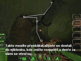 mříž a vejděte do větrací štoly, prolezte jí a na konci si seskočte do