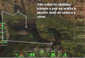 Potom sami sjeďte výtahem dolů. Dole najdete ukládací kámen, různé náboje