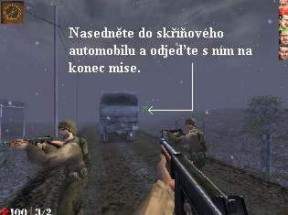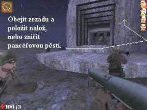 nacistický tank, pokračujte kolem něj po cestě vpřed. Zničte kulometné hnízdo,