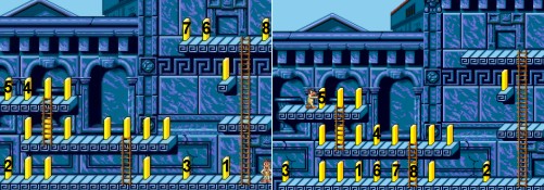 - strčte zprava do rotující a po řebříku rychle nahoru a doprava a seberte dole překlenovací. Postavte jí vlevo a rychle seskočte dolu než se otvor zavře.