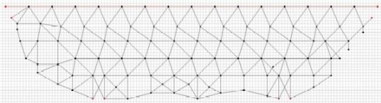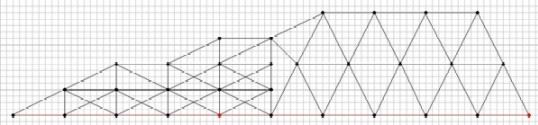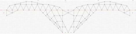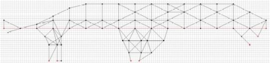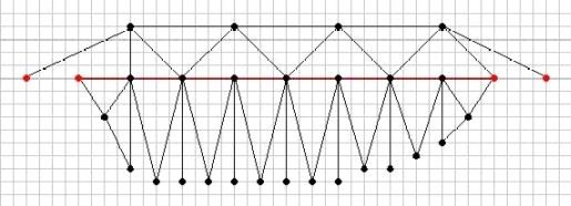 Poznámka : Tento most je obtížný tím, že nemá žádný KB na dně. Má pouze levý a pravý KB a další 2 KB na každé straně, které jsou sice na dně, ale nejsou ve větší hloubce. Tento problém vyřešíte nejlépe tím, že po sestavení konstrukce spojíte všechny spodní body a tak zpevníte dno.
