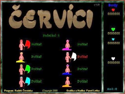 pozice ve hře. Další kolo hry se po smrti všech červů začne stiskem klávesy