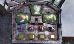 Vyjděte po schodech k zelené věži. Zmáčkněte tlačítko na