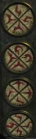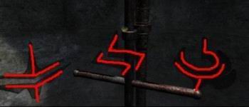 které byly vyryté na sloupech u modrých nádob (oblouček, véčko a účko).