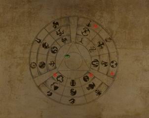 věci, které vypadají jako kompasy. Je třeba na nich nastavit kombinaci