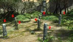 hodinových ručiček a očíslujte si všechny stojany. Potom položte na stojany kouzelné předměty: