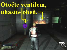 spatříte, kde jste uhasili požár. Vraťte se, vlevo za dveřmi ještě picněte