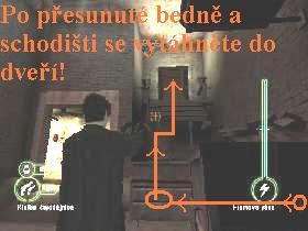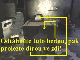 schodištích, projděte dírou ve zdi, pokračujte vřed, spustí se animace a