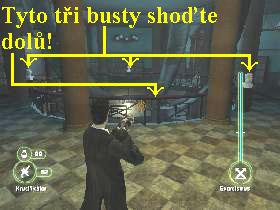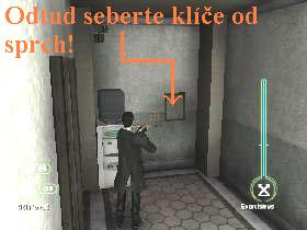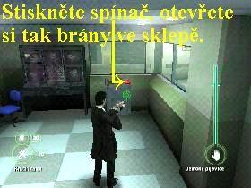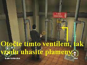 vlevo pokračujte dál. Aktivujte spínač protipožárních sprch, tak se začne