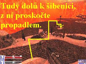nebo za poslední teleport. Stojíte na jakési dřevěné, silně poškozené lávce,