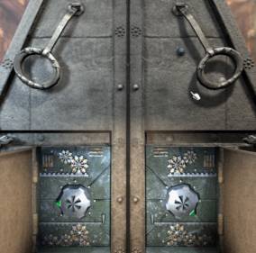 kovovú skrinku. V nej sa nachádza mechanizmus, ktorý vám otvorí cestu