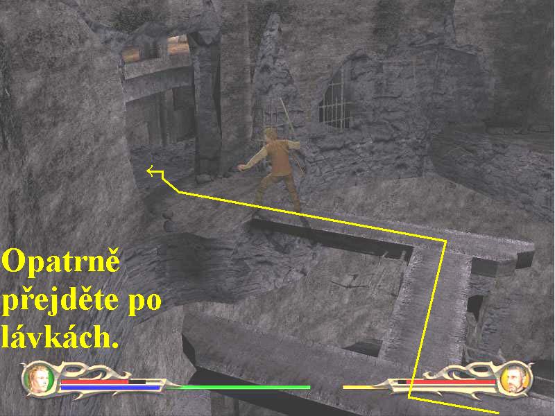 ven, vpravo pobijte vojáky nad kamennými schody, prosekávejte se doleva dál