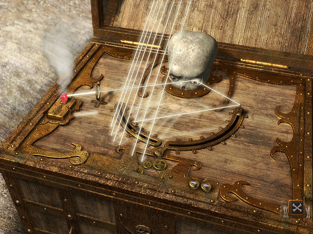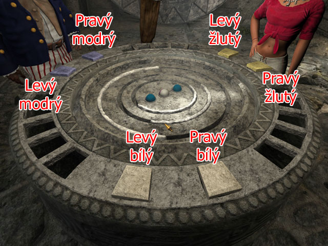 žluté. Po zadání správné kombinace se odsune velké kolo a odhalí poklad.