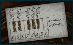 a k stolu, kde je krabička, ktorá je zamknutá. Otvor uplík a pozri si noty a