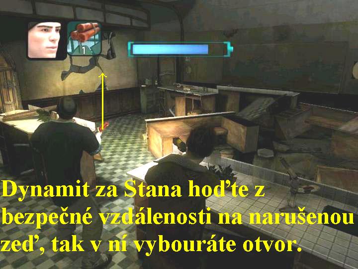 ve stropě a vytáhněte se nahoru. Seberte náboje, potom k sobě vytáhněte i Stana,