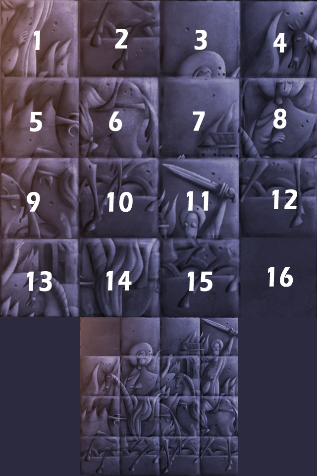 prohlédněte basreliéf a vpravo ze stolu seberte prázdný list papíru. Odejděte
