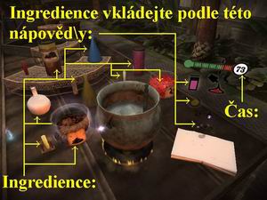 lektvaru. Poté, co ingredience správně namícháte, musíte zahřívat kotlík tak