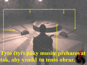 klíč a zatáhněte za páku, tak si odemykáte postupně bránu na zdi pro přechod do