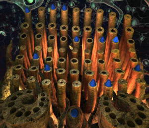 UV světlo provedlo sterilizaci. Nyní u každé baňky s barevným plynem otočte